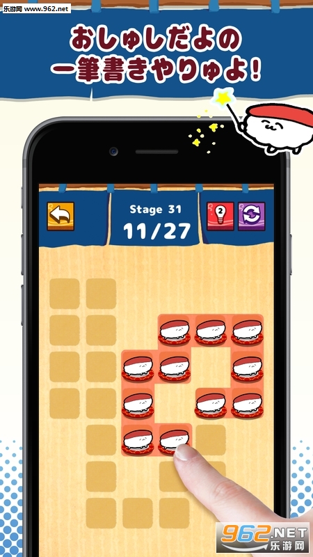 1、玩法简单,非常经典传统的一笔画小游戏,通过点击滑动的方式,让各种各样的寿司在手中一次性被消除掉。