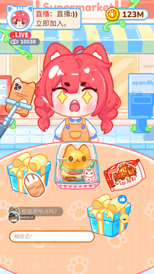 每次直播结束后,您可以参观并探索镇上的超市。从每个人都喜欢的巧克力、奶茶、彩虹牛奶到来自世界各国的招牌菜肴。