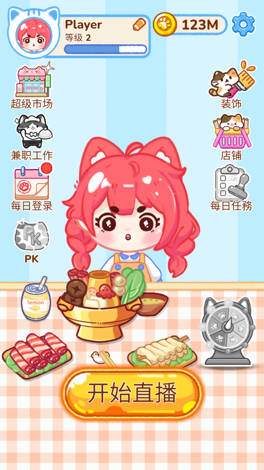 趣味挑战任务:完成吃播任务,吸引更多粉丝,解锁新道具和服装,让咪咪的吃播事业越来越红火!