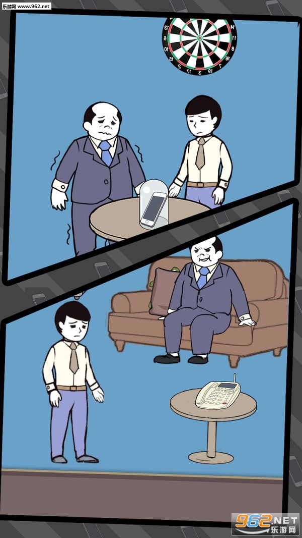 这一关可以看到手机就在柜子上面,不要直接去拿,老板在柜子里。