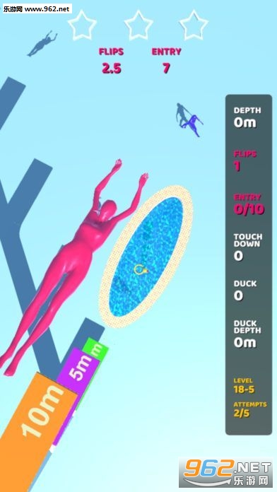 很独特的一款游戏,以模拟跳水玩法为主,玩家在游戏中可以依靠自己的操作来做出完美的跳水动作,创意性相对还是比较强的,入水的时候水花越小分数就越高哦!