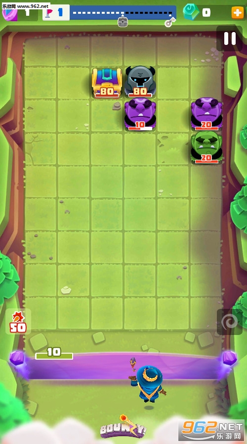 《Bounzy!》是一款卡通风格的休闲防守游戏,游戏中玩家扮演一名守卫城镇的法师,城镇外不断的有怪物袭来,你需要使用你的得意法术,弹射火球进行攻击消灭怪物。消灭怪物后会获得宝箱,使用这些金币和水晶升级你的技能,赶快下载体验吧!