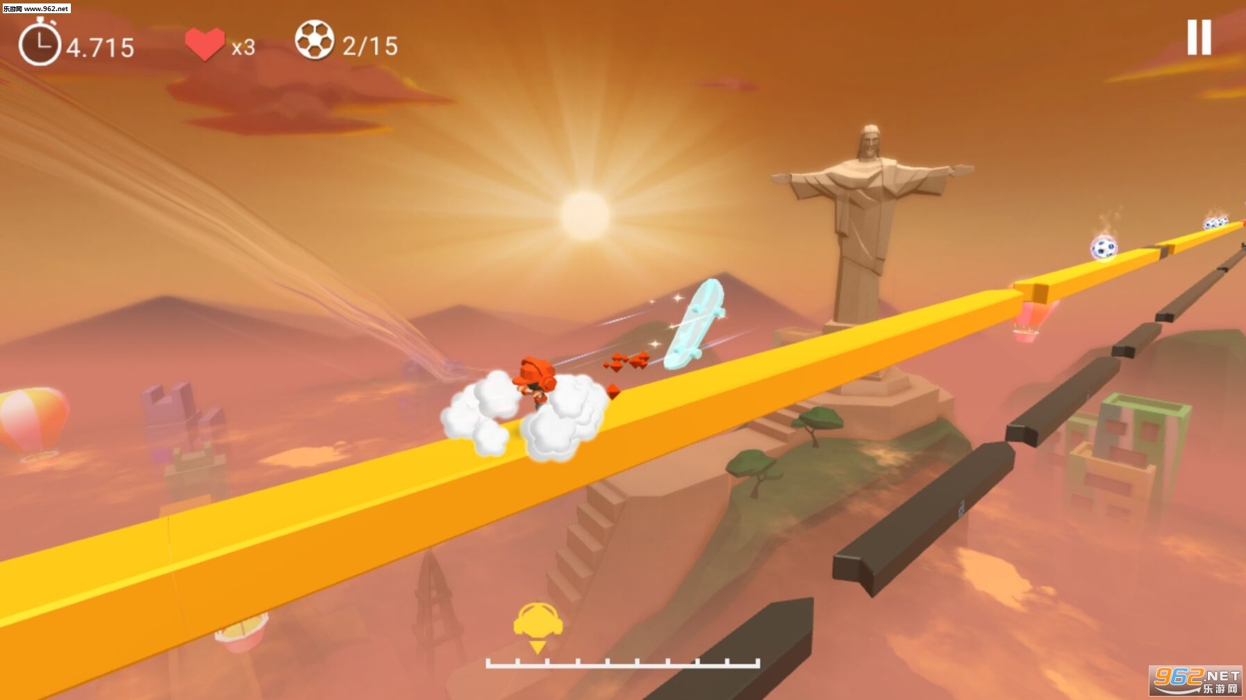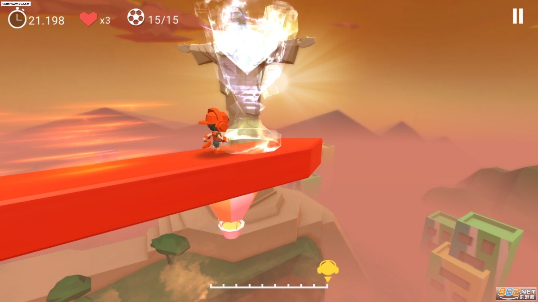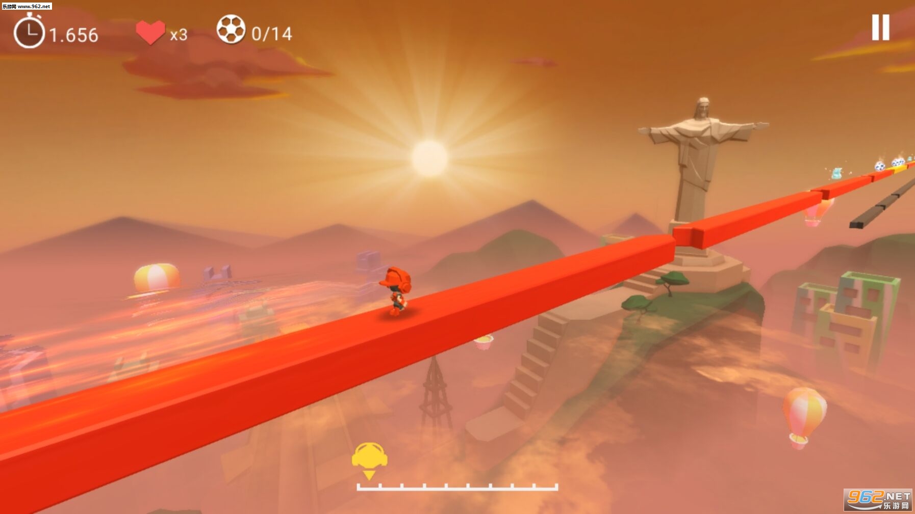 Super Runner是一款画风很唯美的跑酷游戏,玩家将以足球小子的身份来到天空之上的横桥上进行跑酷,你的远方是巴西有名的里约热内卢的基督像,张开双臂的它,就像护佑着整个巴西。而你将在它的注视下在危险重重的天空实现一场不一样的跑酷。