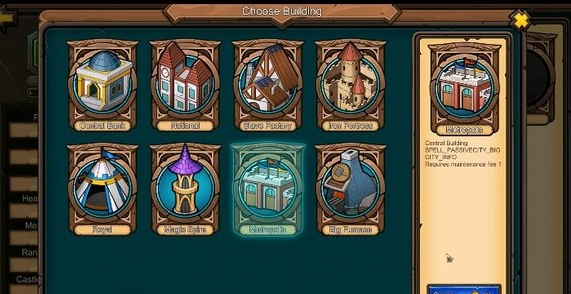 你的城堡以及海洋城堡可以花费金钱来建设新的建筑以及升级老的建筑。城堡包含1个主要建筑槽和8个次要建筑槽。