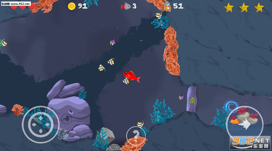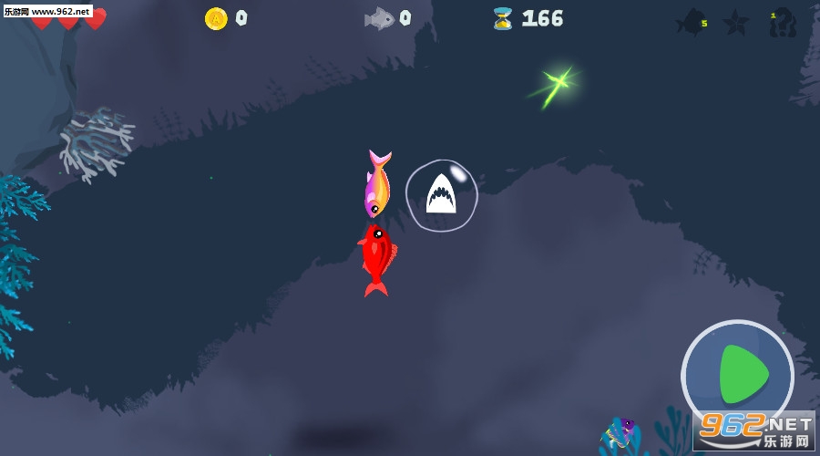 并非所有海中的鱼都很友好。在这里它是鱼吃鱼世界!你必须避免珊瑚礁中的危险,例如可以伤害你的大鱼,尖尖的海胆,刺痛的水母和饥饿的鲨鱼 - 谁知道,它们可能是婴儿巨齿鲨,所以要小心!