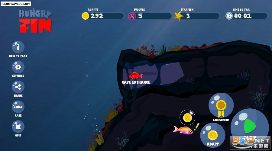 为了在海洋中生存,你需要适应并进化你的鱼。吃掉比你小的鱼,变大,这样你可以吃更大的鱼,并收集适应物品,让你的鱼具有特殊能力:
