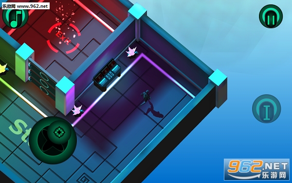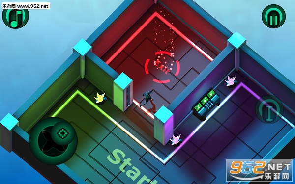 1、炫酷画面,游戏通过多种颜色的光影,打造出了一个略带科幻风格的迷宫,让整体游戏的潜行氛围变得更加有趣。