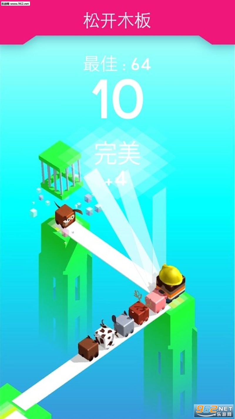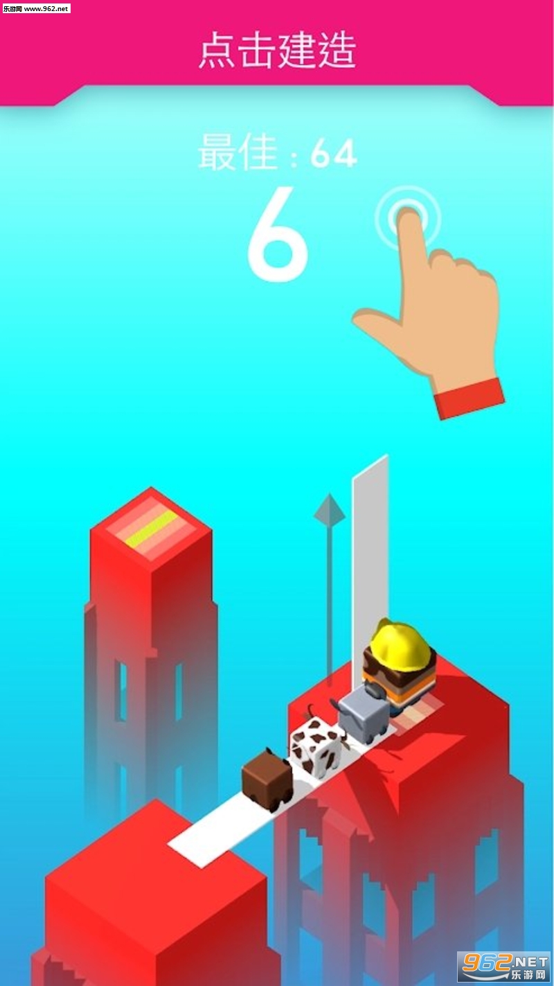 不断搭木板前进,获得越来越高的分数。