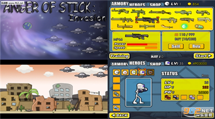 《火柴人之怒》(Anger of stick)是一款火柴人题材的横版冒险格斗游戏,游戏中面对外星人的大举入侵,玩家需要操作一名挺身而出的火柴人与外星人进行对抗。当然火柴人拥有着炫酷的技能,和使用各种枪械。赶快下载体验吧!