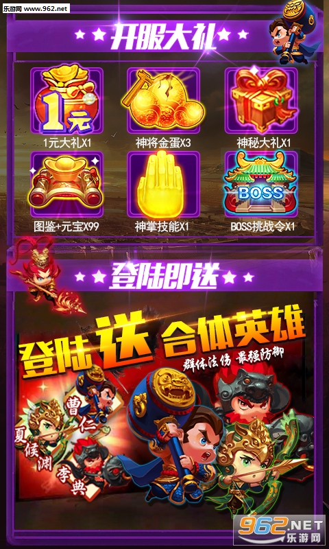 2、上线送永久VIP10,元宝*38888,铜钱*1000W,免费就是任性!
