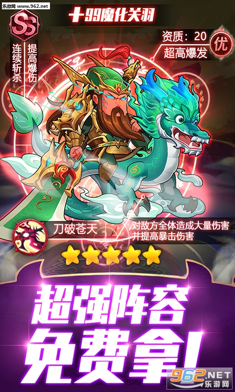 《合体三国飞升版》是一款经典的Q版三国题材卡牌策略手游。游戏将恢弘的三国战场精准呈现,混乱的时代,不屈的灵魂,玩家在这乱世之中揭竿而起,展三国英雄之骁勇善战,闯雄兵百万之一夫当关。丰富真实的关卡剧情,变幻莫测的排军布阵,指尖微操的技能释放,侠骨柔情,将军戎马,你所期待的战场,尽在合体三国!