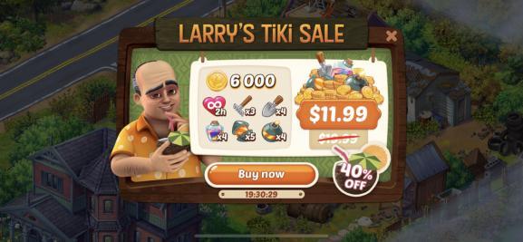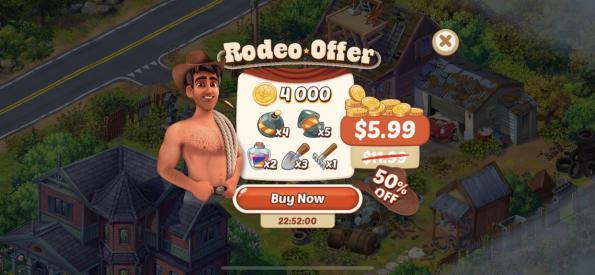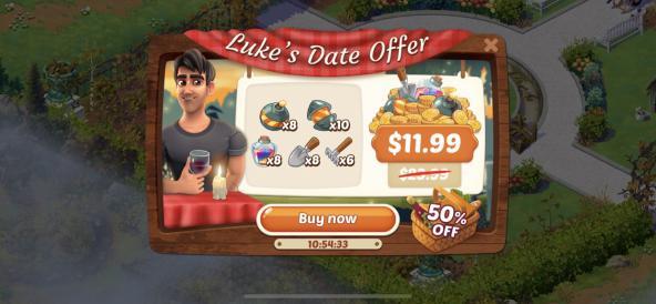 限时打折:游戏右上角位置出现倒计时礼包打折活动,50%折扣力度,吸引玩家购买,提高游戏付费率。