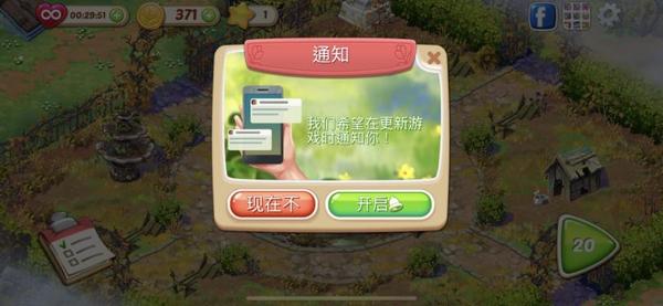 心心恢复通知: 在游戏前期玩家通关后显示通知准许,当玩家因消耗心退出游戏后,在心的CD冷却后发送手机推送对玩家进行提示,召回玩家,提高玩家的粘性。