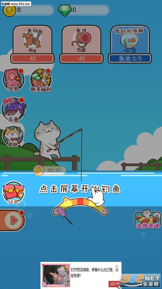 喵喵水族箱游戏是一款非常有趣的小猫钓鱼模拟养成类型游戏,在游戏中,玩家将要控制自己的小猫角色在不同的地图场景中进行钓鱼,你需要通过左右移动来控制鱼钩的方向,尽可能让更多的鱼成功上钩,成功钓上来的鱼都可以将它们养起来哦,快来打造属于自己的个性水族馆吧。