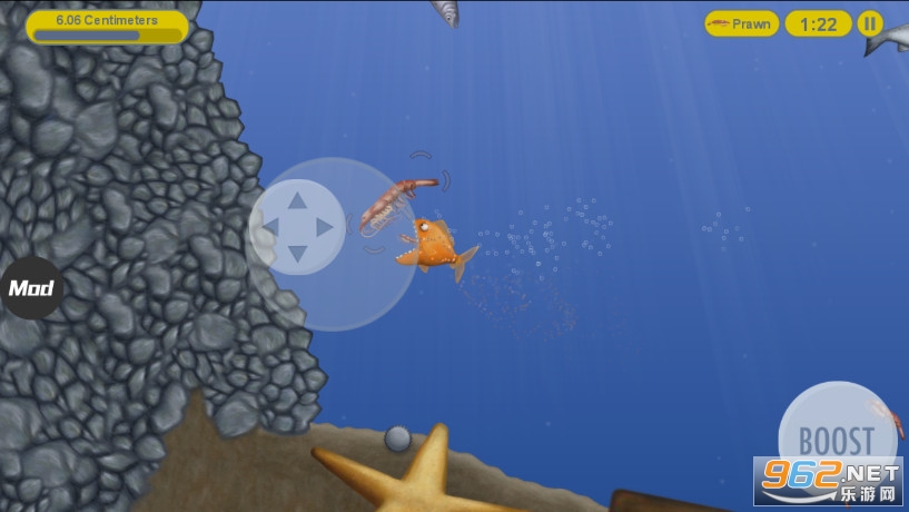 按照大鱼吃小鱼的规则,你可以从小虾米到大鲨鱼,最终可以飞到海面捕捉飞鸟和人。