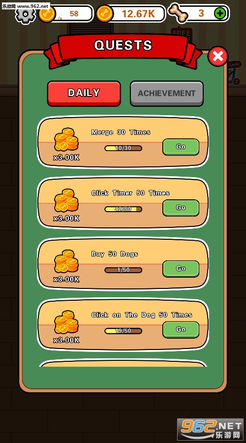 一款以可爱的狗狗为题材的合并放置类游戏,我们不需要知道为什么相同的狗合并会出现不同的狗,只需要知道狗狗很可爱,看到它们卖萌的样子会非常满足,推荐给喜欢狗狗的玩家。