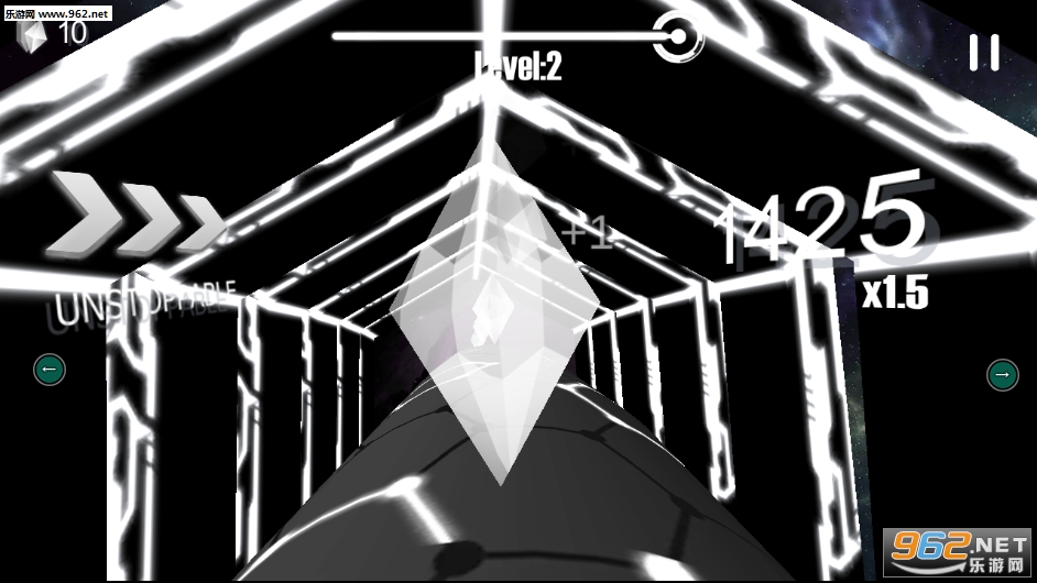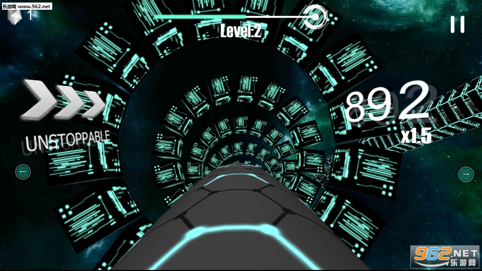 玩家需要通过第一人称的视角,在充满科幻气息的跑道上旋转前进,躲避石头以保持更高的速度,收集沿途中的钻石。随着游戏流程的不断深入,速度也会越来越快,挑战你的极限,坚持更久,到达更远的地方吧。