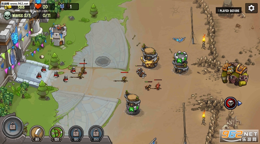 一款非常有趣的塔防游戏,一场人类与兽人的殊死较量,召集王国的勇士们,抵御兽人的进攻,夺回我们的土地。游戏中关卡设计巧妙,有着形态各异的箭塔,喜欢塔防游戏的玩家不要错过。
