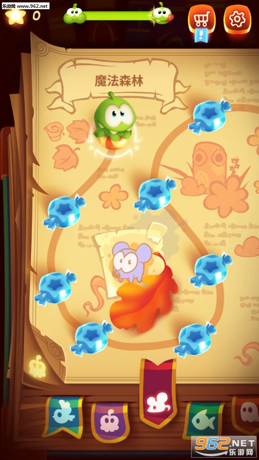 2、在冒险过程中可把Om Nom变为5种魔法生物;