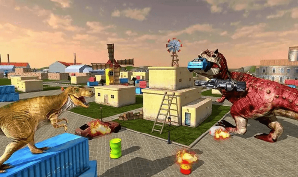 恐龙城市大战是一款超级热血刺激的恐龙射击冒险游戏,上手简单玩法多样。玩家将要以恐龙的身份探索一个充满危险的异世界,你需要带领自己的恐龙队伍,使用强大的武器去入侵城市,非常的解压,超多武器等你来使用。
