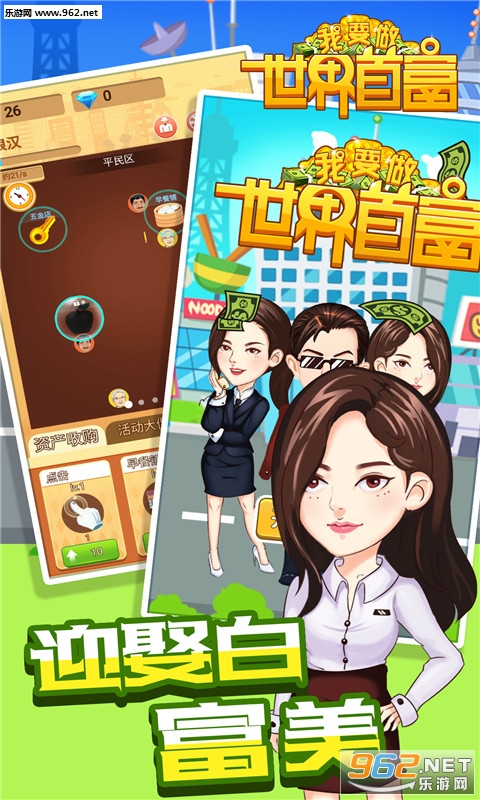 《我要做世界首富安卓版》是一款非常好玩并且十分有趣的模拟经营类休闲游戏,游戏画面简洁精美,卡通风格人物显得十分可爱,游戏操作比较简单玩家极易上手,游戏中玩家需要通过点击收集金币,获得金币之后可以自由的购买众多的土地,发展事业!感兴趣的玩家快来下载体验吧!