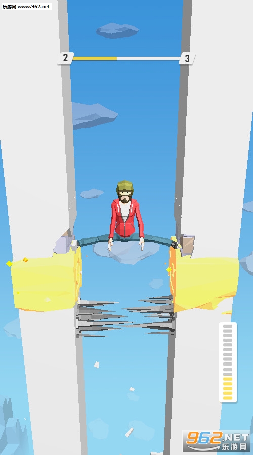 《踢脚墙》(Kicking Wall)是一款休闲闯关游戏,游戏中玩家需要从高处用双脚固定自己慢慢向下落,两侧的墙壁上会有许多的陷阱,玩家需要停下来用双脚将其震落,最后成功通关。游戏中可以解锁多种人物,还有着丰富关卡等你来战。