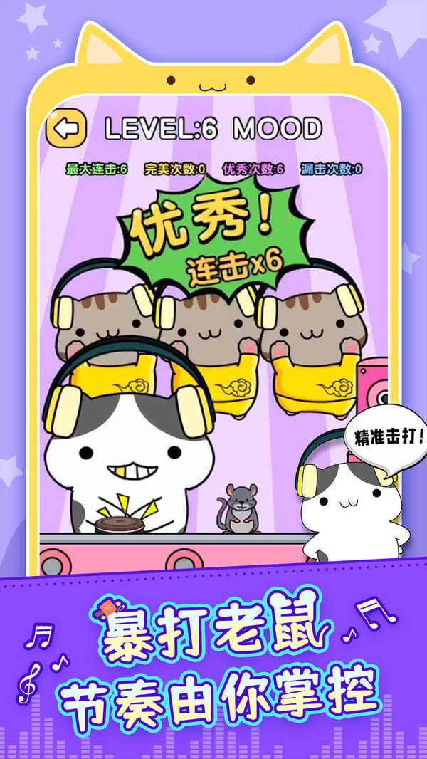超可爱的演奏动作,萌化每一位玩家的心,体验一场最过瘾的节奏游戏;