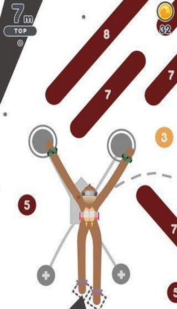在本游戏中,您会控制一名肢体无力(穿着单薄)的长腿攀爬者,在精心设计的攀岩墙上,攀爬到新高度,解锁各式新服装。