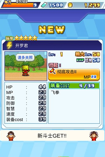 第一次给的斗士箱开出的都是高星的斗士,建议先刷出一个开罗君再进行游戏,这样以后会轻松很多。