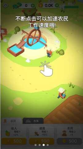 1、轻触屏幕将种子撒入田地,耐心等待它们发芽,最终收获闪耀的金豆子。