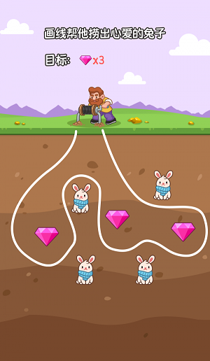 躺平脑力发育是一款很不错的闯关游戏,以搞笑的套绳为主题,让玩家扮演一位想要躺平的人,玩家需要按照任务来完成各种无厘头的谜题,勾取同类型的物体,将所有兔子与钻石进行区分,能够用绳子圈住同一种东西,玩法简单,快来下载玩吧。