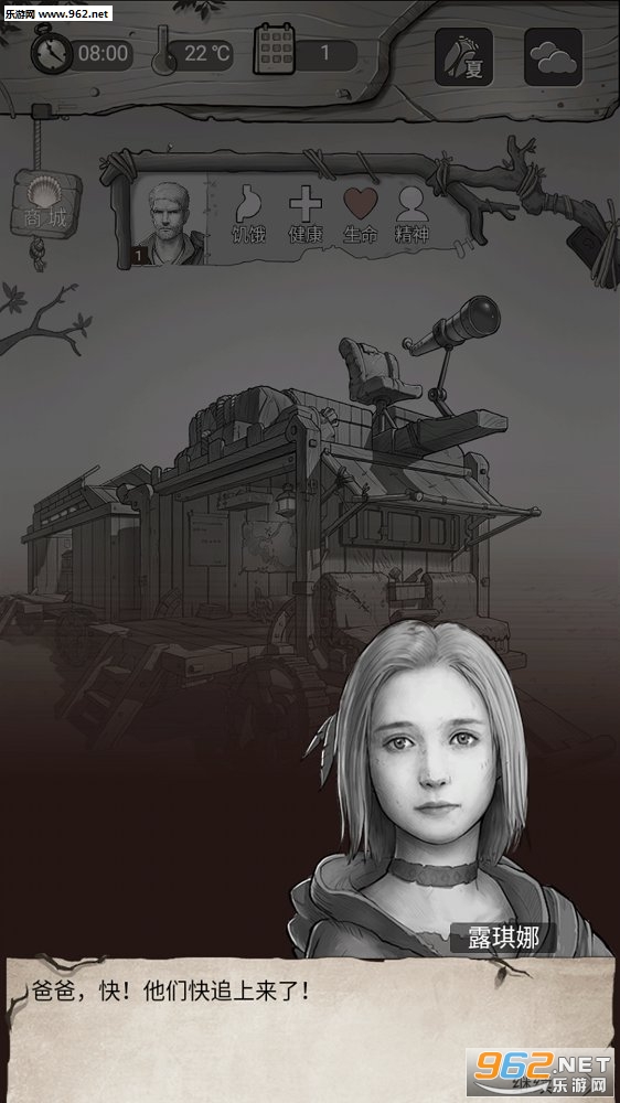 多人物剧情,不再是主角一个人冒险,开场就带着女儿,后面通过解锁剧情和完成不同的冒险能够陆续的拉拢其他伙伴,不同人物的技能和专精也是不同的,所以合理的分配这些人去干他们精通的事情,能够起到事半功半的效果。很多设定也比较符合现实,玩家要做的就是在那个荒芜的世界存活下来,在外面探索的时候,注意饥饿值等等,快要见底的时候就赶紧回家补给!