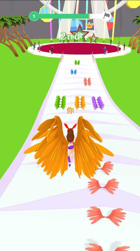 1、非常简单的跑酷小游戏,完成收集任务,解锁更多绚丽翅膀;