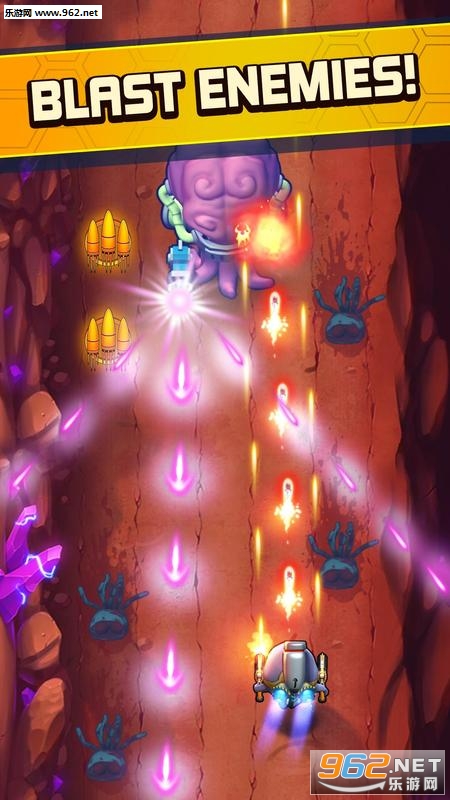 2、玩家在游戏中可以获得奖励,使用他们进行升级,或购买一次性道具,升级自己的角色,让外星人们被你轰杀至渣。