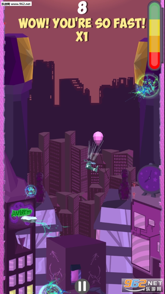 非常好玩的一款软件,对操作有一定的考验。玩家在游戏中需要吹动着气球不停的向上,并且让它在往上的过程中躲避各种障碍物。
