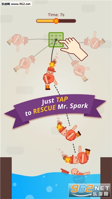 玩家需要选择时机,消除箱子让火花侠落到水中,玩起来很考验手速和智商哦!