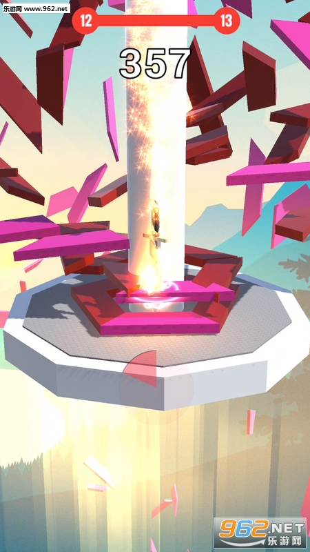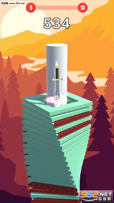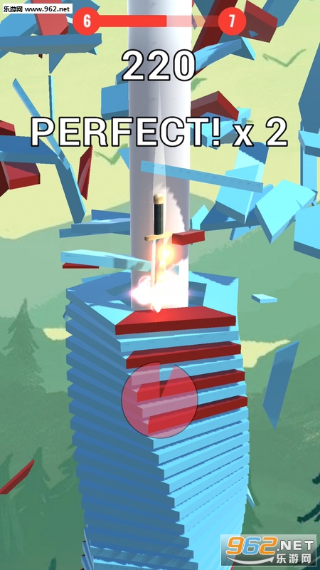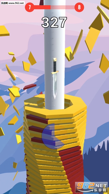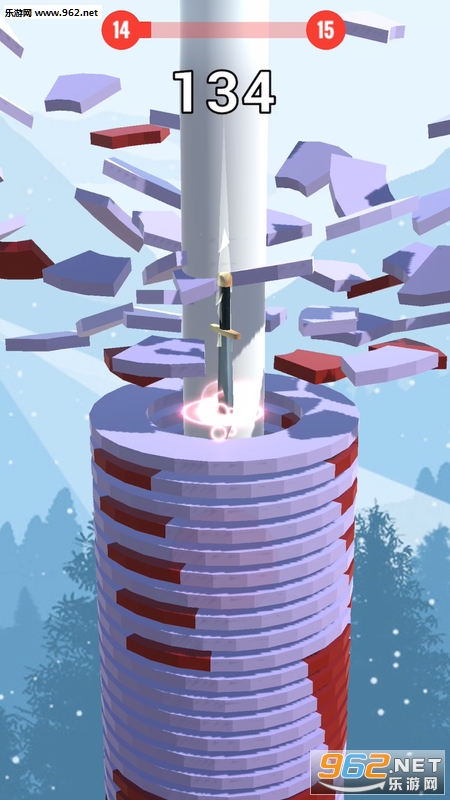 Tower Bash(塔楼猛击)是一款敏捷类的休闲游戏,玩家在游戏中,需要控制一把锋利的小剑,从上方向下不断地移动,通过攻击非红色的层次区域,将塔楼的每一层都完全粉碎,成功到达底层。