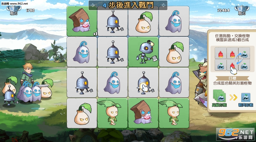 玩起来还不错的一款休闲闯关游戏,游戏中任意两个之间都可以交换位置,斜格也可以进行消除,如何在有限的步数里面使自己的战斗力最大化需要多多熟悉一下,推荐给喜欢消除冒险闯关游戏的玩家。