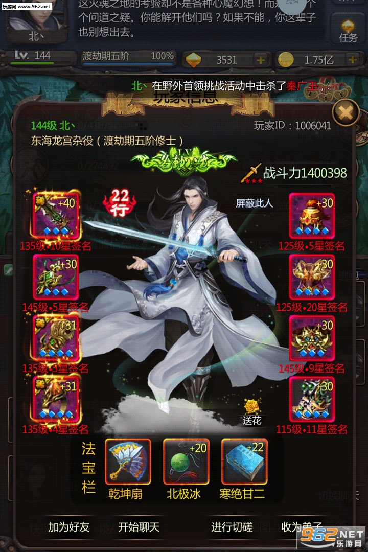 游戏中有丰富的装备系统,称号系统,境界系统,还可以打个人boss等玩法。