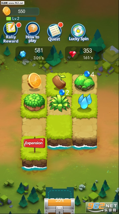 《进化的陆地》(Evolving Land)是一款卡通风格的合并放置类的休闲游戏,游戏中玩家需要将相同的东西合并来获得更高的收益,但是一开始的格子不够需要慢慢积攒钻石购买陆地,然后进行更多次的合并,无限循环,赶快下载体验吧!