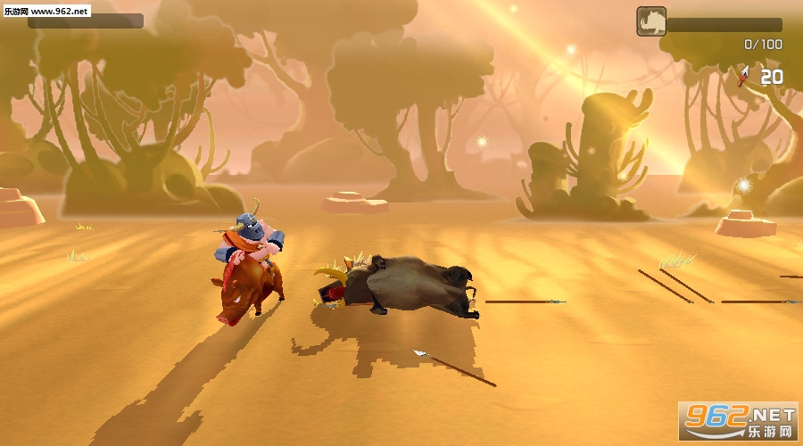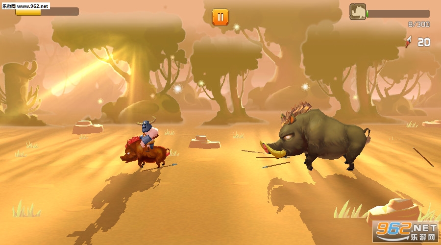 一款非常有趣的卡通风格动作射击游戏,游戏中一开始使用矛来攻击野猪,后面野猪会越来越强,你需要不断提升自己的装备,才不会被野猪顶翻在地。