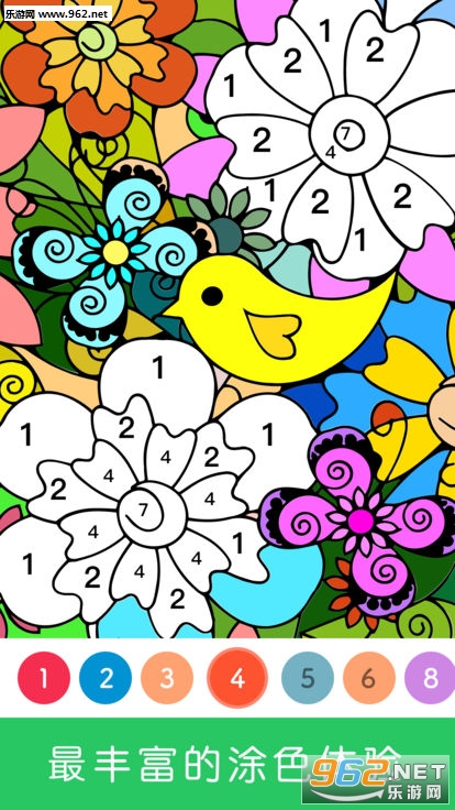 选择你喜欢的图片,按照数字顺序涂色即可,而且可以生成短视频,与朋友分享涂色过程哦!