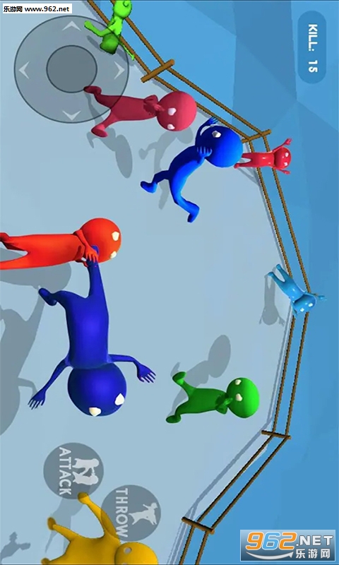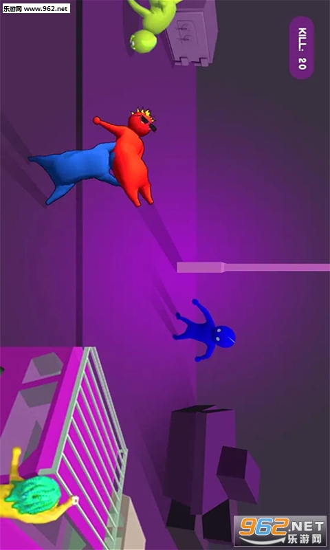 点击屏幕上的按钮,就可以蹬腿,此游戏有趣之处在于,两人还能手拉手在空中翻转,这时候找个机会就可以让对手头部着地。