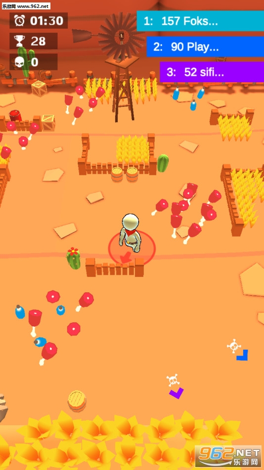 趣味的io游戏,玩家可以解锁各种牛仔皮肤冒险,游戏玩法简单,不断的收集鸡腿等道具即可,吃的越多得分就越高,注意游戏有着时间限制,喜欢的朋友可以下载试试。