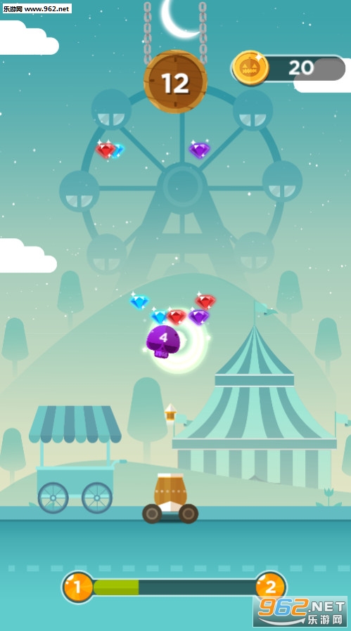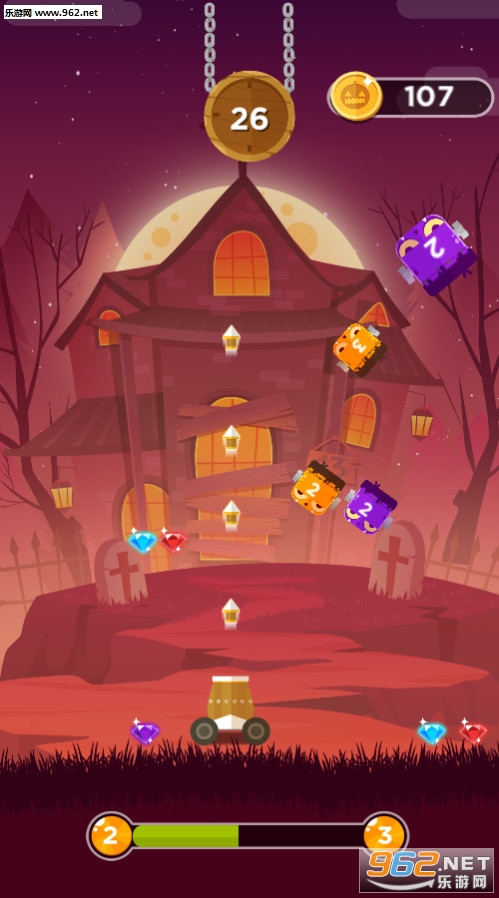 一款非常优秀的卡通风格休闲游戏,游戏中的人物场景都充满了万圣节的气氛,游戏玩法简单,不断的射击掉落物即可。