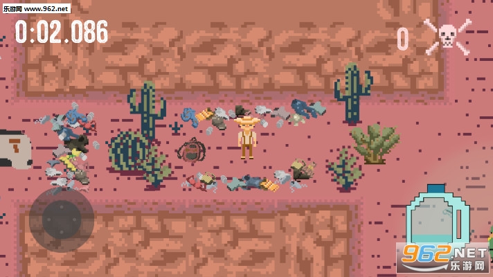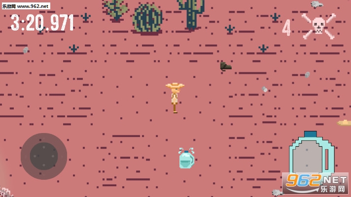 《西部边界手游》是一款西部冒险游戏,游戏中玩家扮演一名牛仔在缺水的西部世界冒险,你在戈壁滩里行走,收集戈壁滩中的水,将你的水瓶装满,向终点一路进发,路上会有不断巡逻的警察,不要被他们的手电光照打,一旦进入光源范围,你的冒险就结束了。
