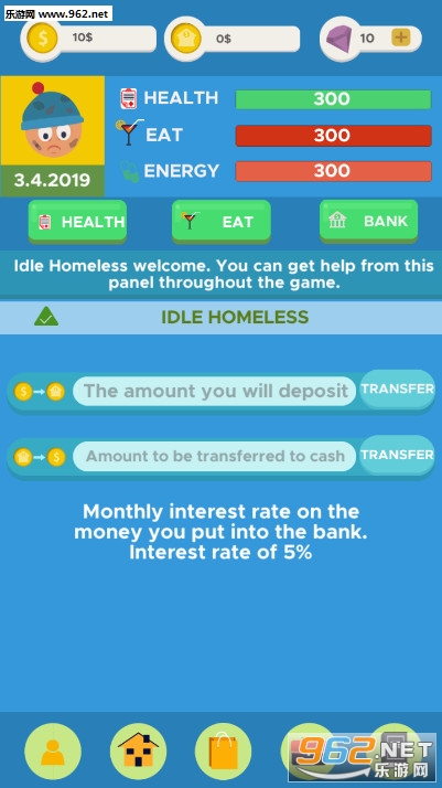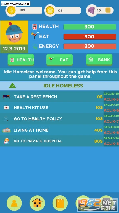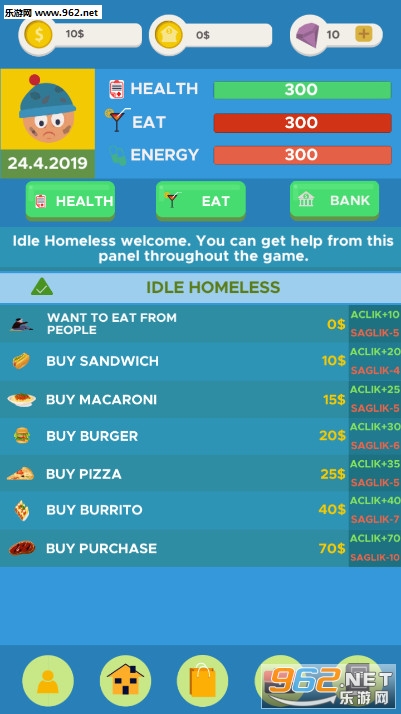 《Idle Homeless安卓版》是一款流浪汉模拟游戏,游戏中玩家一开始是一名食不果腹的流浪汉,你要去找工作,慢慢的积累一点金钱,存入银行获得利息,拿出一点来去购买食物,不断的工作,投资,积累你的资金,然后你可以去开公司,聚集更多的财富,成为大富豪。