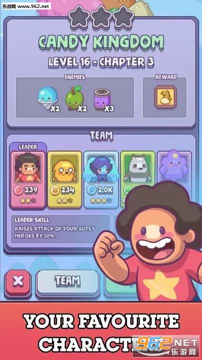 2、选择你喜爱的角色,建立你的专属角色团队,征服各个难关;