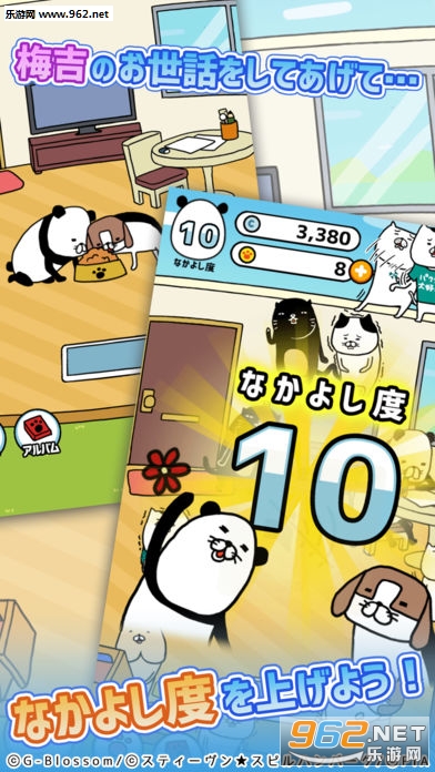 陪着可爱的熊猫与狗狗,过快乐的生活,而且可以收集有趣的回忆照片哦!祝你玩得开心!