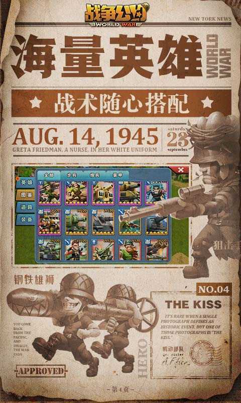2.海量英雄角色,百余位独一无二的兵种与特色技能的英雄等待指挥官的招募差遣。